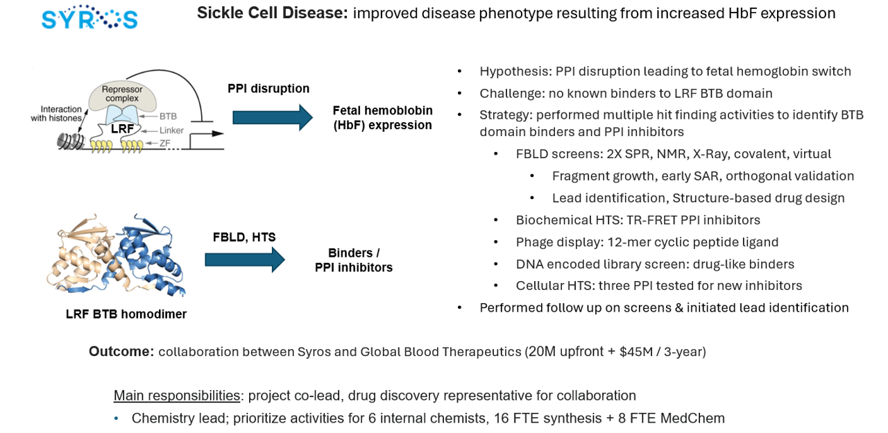 Vast experience in drug discovery with fragments, covalent, molecular glues, bifunctional, inhibitors of kinases, PPI, peptides across oncology, rare diseases and virology